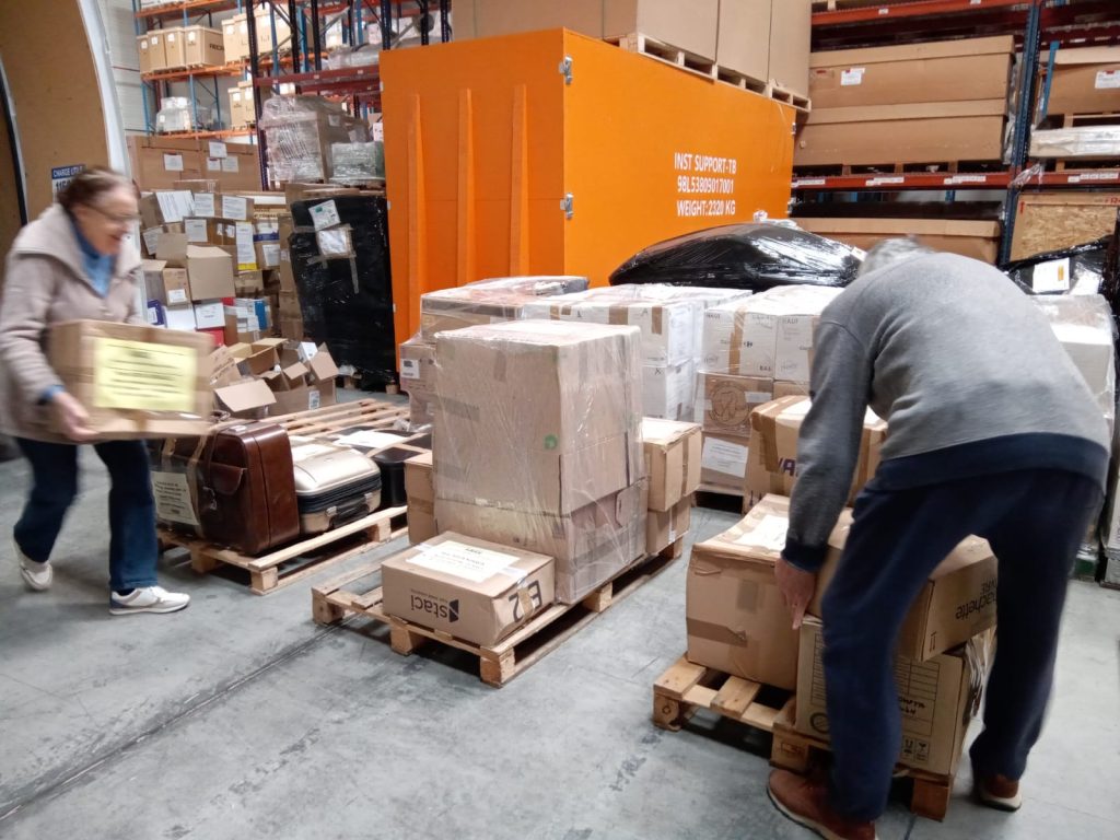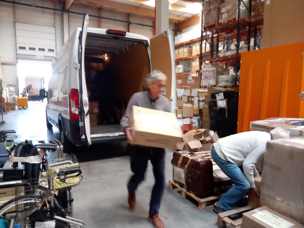 Cela a été un long et fastidieux travail de préparation de cartons (médicaments, laits pour bébés, petits matériels divers, draps et serviettes) pour Yvette et Monique.